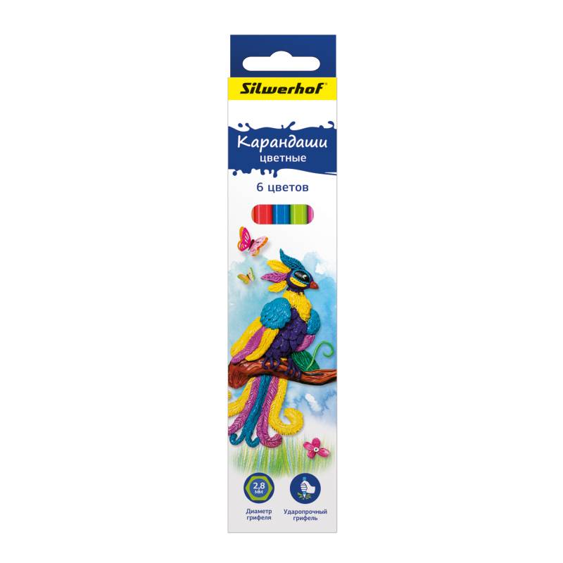 Карандаши цветные Silwerhof 134206-06 Народная коллекция шестигранные d=2.65мм 6цв. коробка/европод.